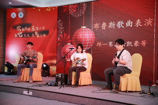 联欢会上,来自学院各系、中心、学工和行政的教职工代表为大家献上了精彩节目,送上新春祝福。青年教师邱一苇、唐凯豪等组建的乐队为大家带来《布鲁斯歌曲表演》,拉开了演出序幕。