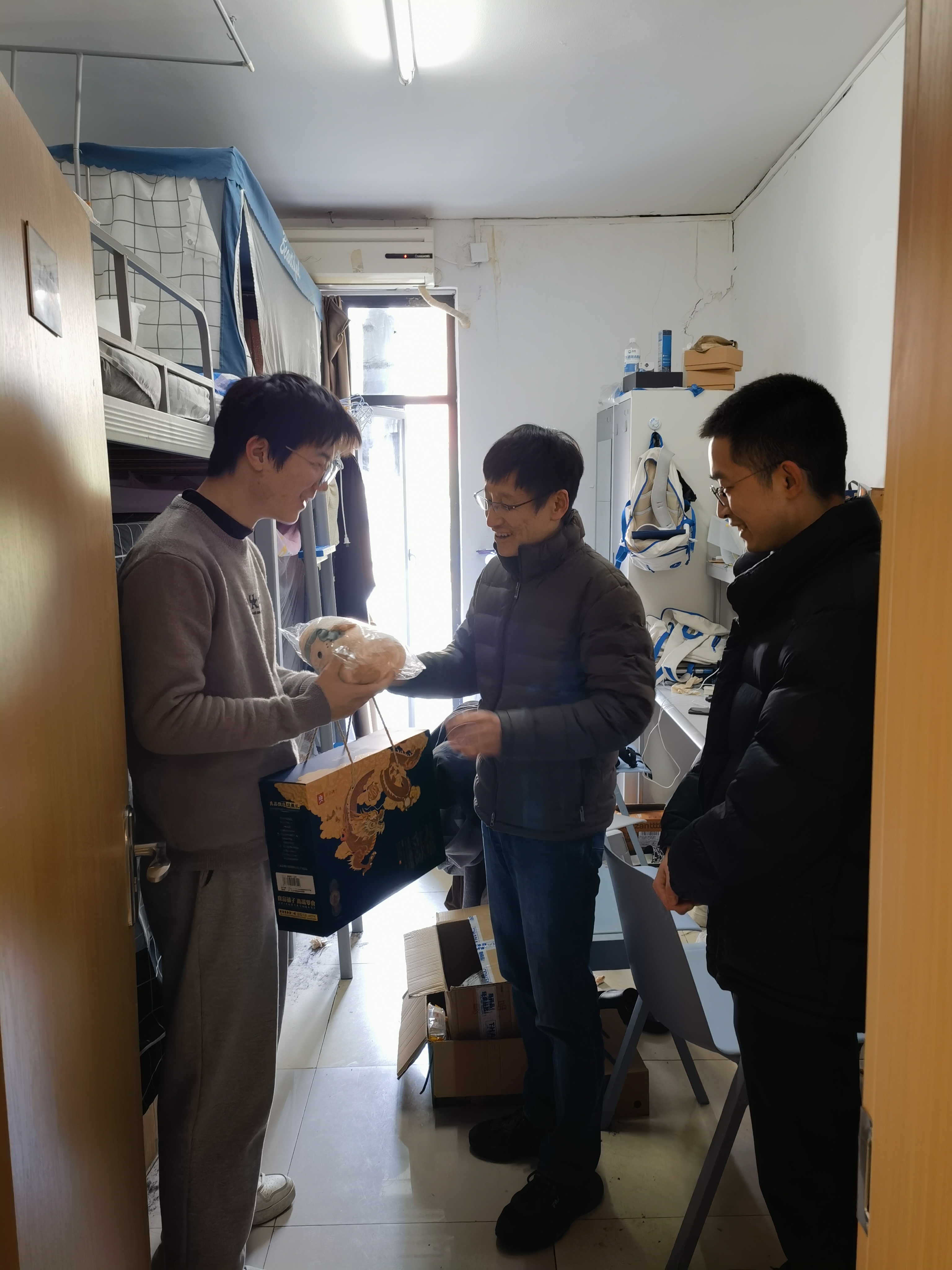 赵书记、戴书记和辅导员老师们在学院会议室为部分留校研究生代表发放了新春慰问礼包。赵书记仔细询问了同学们留校期间的学习和生活安排,叮嘱大家注意安全,经常与导师联系交流,在认真完成科研工作的同时,注重劳逸结合、身心健康。