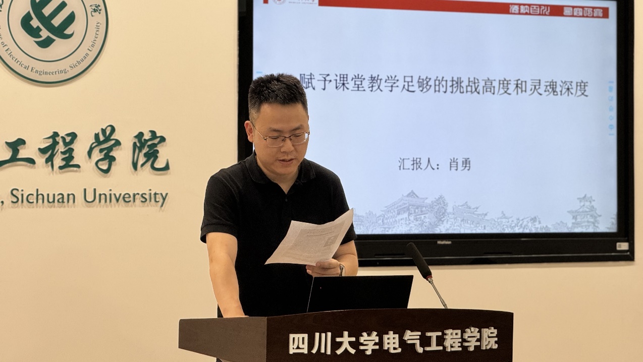 近日,四川大学永利集团3044am电气工程系于望江校区基础教学楼报告厅举办了以“赋予课堂教学足够的挑战高度和灵魂深度”为主题的工科教学课程思政研究与实践交流活动,主讲人为永利集团3044am专业实验中心主任肖勇老师。本次活动由王杨老师主持,参与人员包括学院院长肖先勇,副院长李长松以及近年新入职的青年教师。