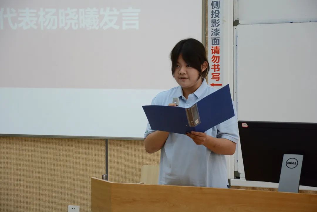 2024级中德班新生代表杨晓曦在发言中向学校、家长和老师们表达了深深的感激之情。她表示,作为川大的一员,将谨记校训,以坚定勇敢的姿态面对未来的挑战,期待与同学们携手并进,共同书写青春的华章。
