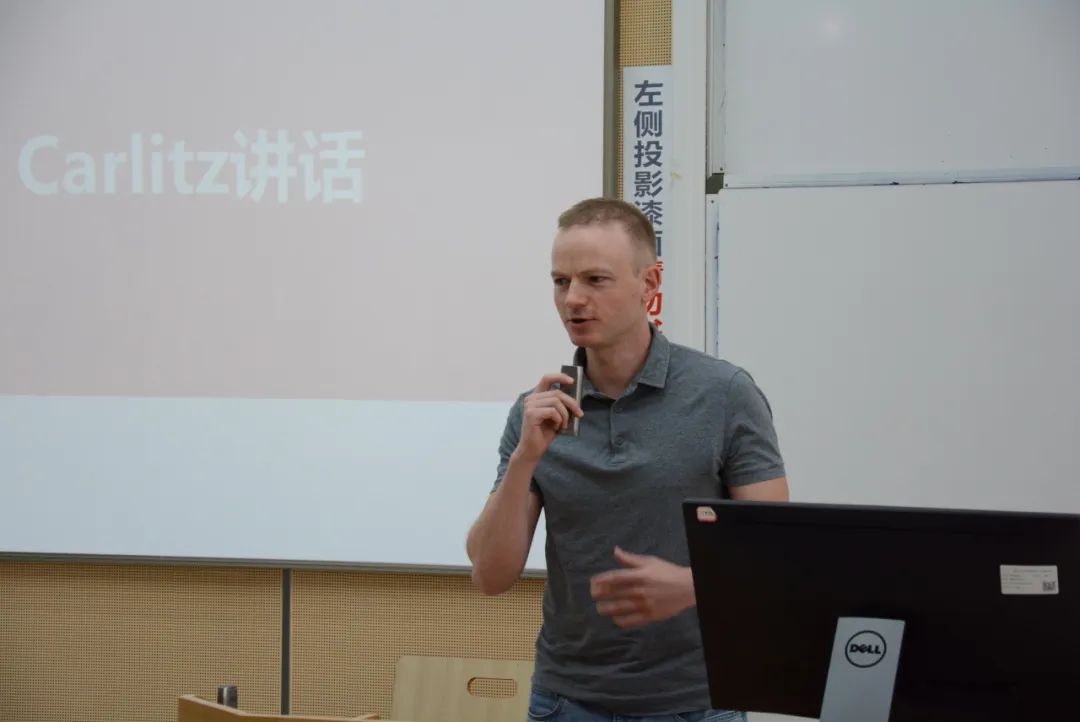 随后,德语教师代表Amos Carlitz老师用英语向新生们简要介绍了德语学习的特点及其在项目中的重要性,并鼓励大家尽快适应德语的学习模式。