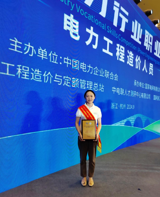 不熟悉,那就学!为期一个月的备赛期里,段雨婷学得起早贪黑、不知疲倦,“每天就是学!白天上课,早晚自习,遇到不懂的问题就和其他选手还有教练交流,很多平时忽略的内容都在这个过程中一点点被补齐。这也为我之后的工作打下了基础,毕竟过硬的专业能力,是做好造价管理工作的前提。”电缆工程计量计价规范、工程设计、施工技术……凭借不懈努力,段雨婷硬生生从电缆专业“小白”成长为了能熟练看图、算量、组价的电缆线路造价熟手,最终斩获电缆线路专业个人三等奖,并被授予“全国电力行业优秀技能选手”称号,刷新了公司基建技经专业的最高荣誉纪录。