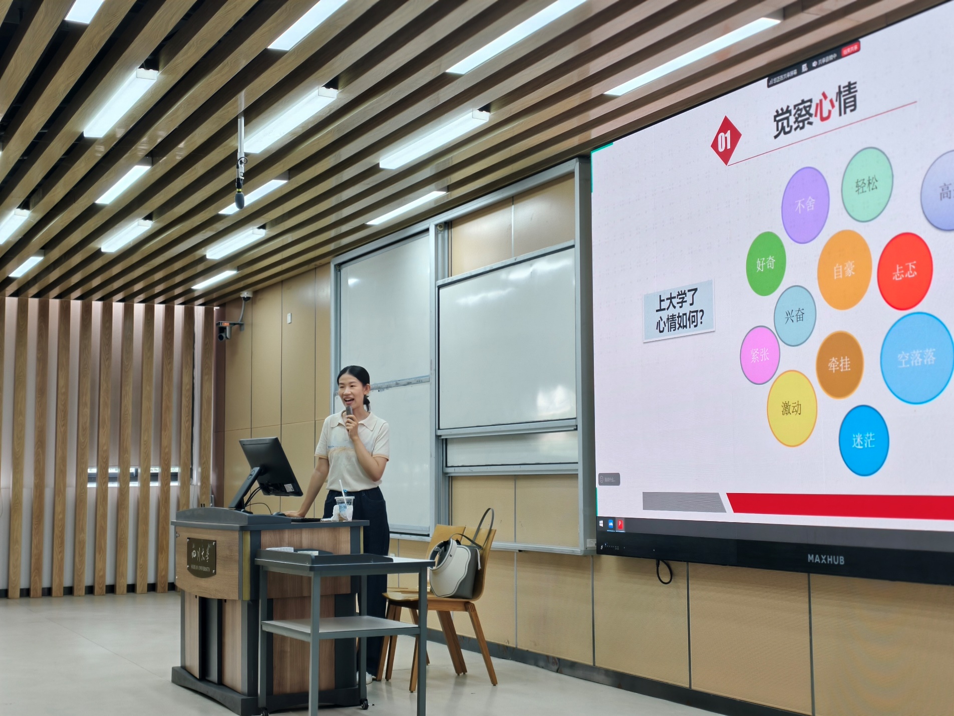 9月10日下午,学院举办“海纳百川 有容乃大”2025级新生校史文化学习主题活动,全国干部教育培训基地刘一睿老师应邀作专题报告,学院本科新生辅导员任杰、朱愉田,学校机关青年骨干兼职辅导员钟蕊霜、黄鑫、王璟玲,以及2025级全体新生共同参加学习。刘一睿老师以文翁石室的历史渊源为切入点,系统讲述了四川大学129年与党和国家发展同频共振的辉煌历程,深刻阐释了“海纳百川 有容乃大”的精神内涵。刘老师声情并茂讲授下,在场师生深受启发,增强了对学校的认同感与归属感,感受到了学校深厚的文化底蕴与校友奋发向上的精神动力。