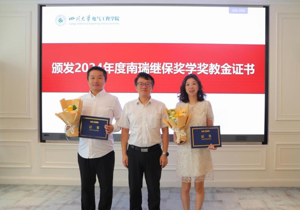 “南瑞继保奖学奖教金”是由南京南瑞继保电气有限公司在我校设立,为奖励四川大学永利集团3044am成绩优秀、全面发展的全日制本科生和研究生,以及在教学、科研、管理等方面业绩突出的学院教师。