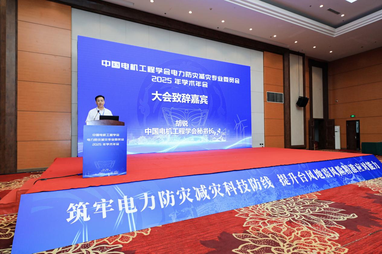 胡锐秘书长指出,电力电网安全关乎国家能源安全,电力防灾减灾技术是关键支撑。近年来,极端天气频发,严重威胁我国电力系统稳定运行。当前,全面贯彻总体国家安全观为电力防灾减灾科技创新带来机遇,但也面临气候变化、新型电力系统建设等挑战。本次年会以“筑牢电力防灾减灾科技防线,提升台风地震风险精准应对能力” 为主题,聚焦气象、地震地质等前沿方向。学会代表希望与会者分享成果、交流经验,助力新型电力系统建设。