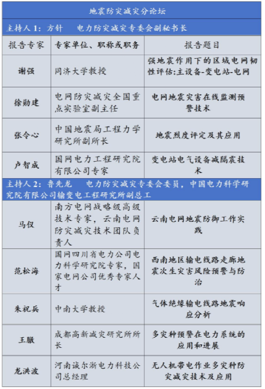 本次会议设置了两个分论坛,即“地震防灾减灾分论坛”和“台风暴雨防灾减灾分论坛”。两个专题的主持人、报告专家及其主题如下表所示。