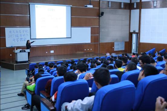 最后滕欢老师激励在座的新生,即使不知道未来的发展方向,对生活的前景也很茫然,也一定要认真努力,打好基础,多接触高端科技的前沿,这是为自己的未来扩大选择的空间,只要努力学习,最终一定会实现自己人生的梦想。