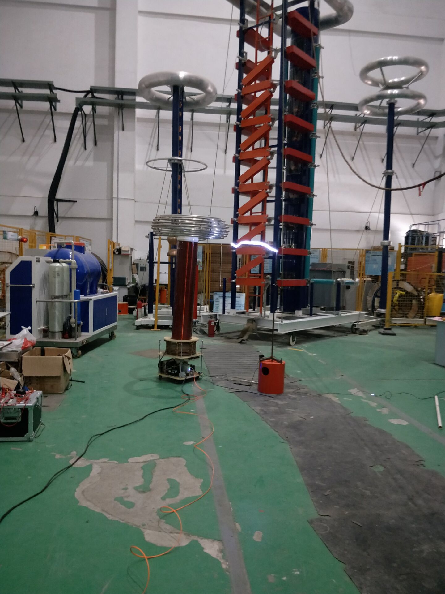 高压楼前集合后,大家有序列队,在实验室相关研究生学长的带领下进入高电压实验室。最吸引大家眼球的莫过于实验室最高的装置—高压冲击发生器,学长与海外交流学生简单交流了有关“串联放电,并联充电”的实验原理。行进过程中,大家了解了实验室的发展历史和建设规模,同时海外同学也展现了对高压实验的兴趣并且提出多种问题。接着,为满足大家的好奇心,学长展示了“特斯拉放电”实验,在形状类似闪电的摆动中发出有节奏的音乐,让在场者感受高压试验的壮观。最后海外交流学生进行亲手操作,以感受实验的魅力,大家克服了心里的恐惧,大胆尝试并收获满满。