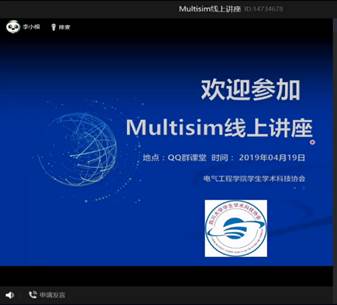 作为电气工程专业必备的软件之一,Multisim电路仿真模拟软件使同学们可以在电脑上进行电路仿真实验,促进理论知识的理解与验证,在双创活动中发挥巨大的作用,学好这个软件的应用对同学们的学习至关重要,为满足同学们的学习需求,永利集团3044am学生学术科技协会特邀请学院李小根老师为同学们开设Multisim线上特色讲座。2020年4月19日下午三点,讲座在QQ群课堂在线顺利进行,本次讲座深受学生欢迎,除了永利集团3044am的同学以外,还有来自空天、机械等学院的211名同学参加。