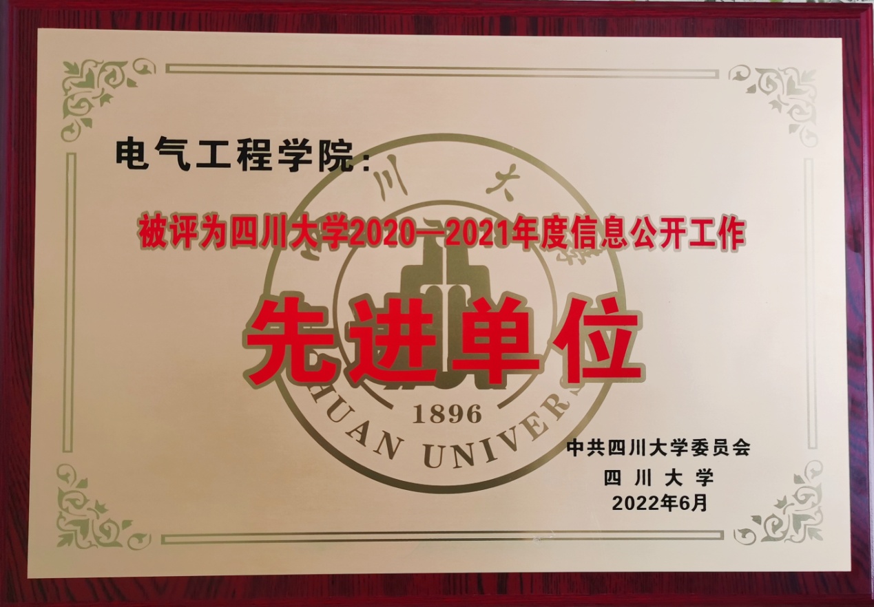 近日,学校信息公开办公室组织校内各单位进行了信息公开自查,并在自查基础上,开展了四川大学2020-2021年度信息公开工作先进单位评选表彰工作。永利集团3044am被授予“四川大学2020-2021年度信息公开工作先进单位“称号。