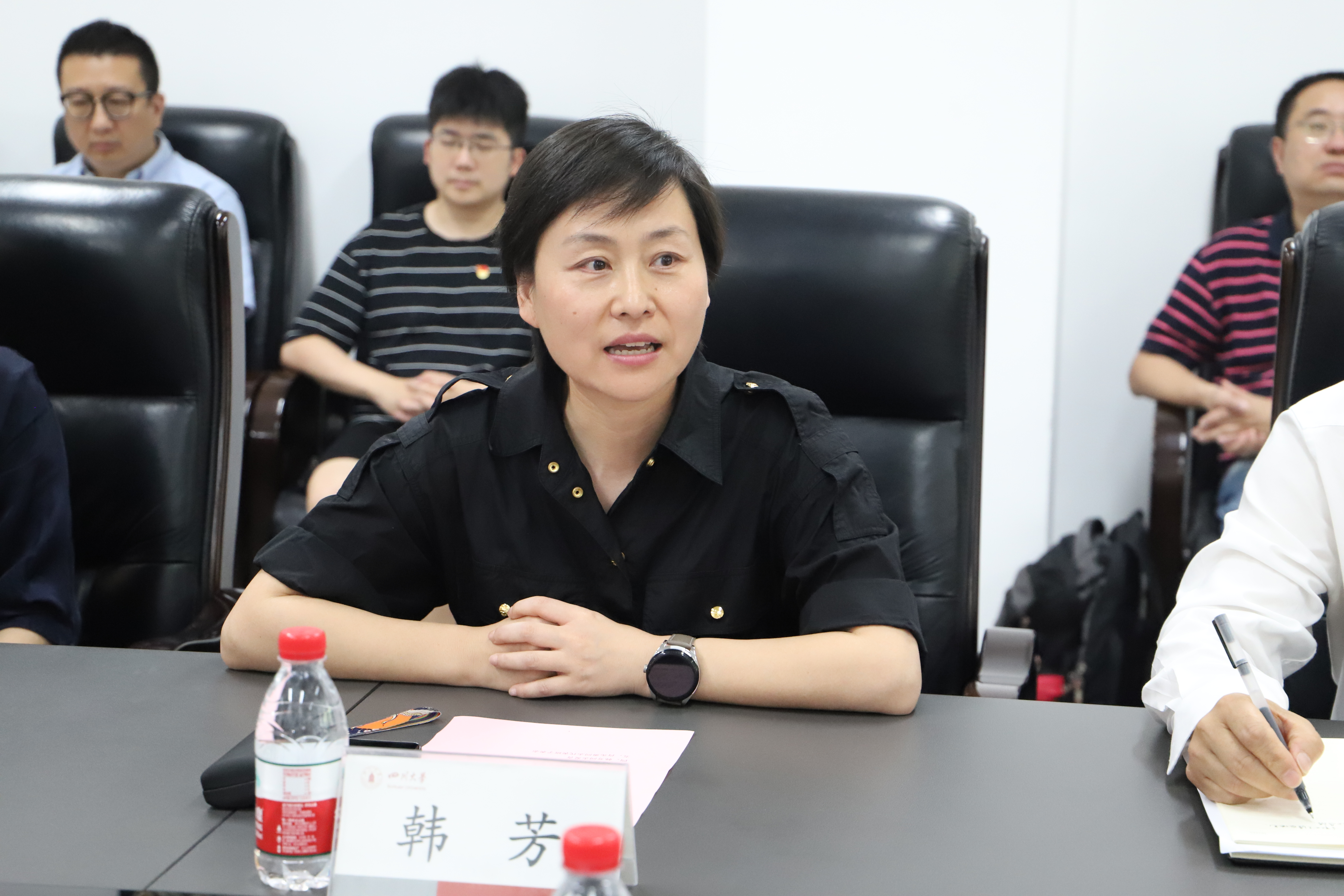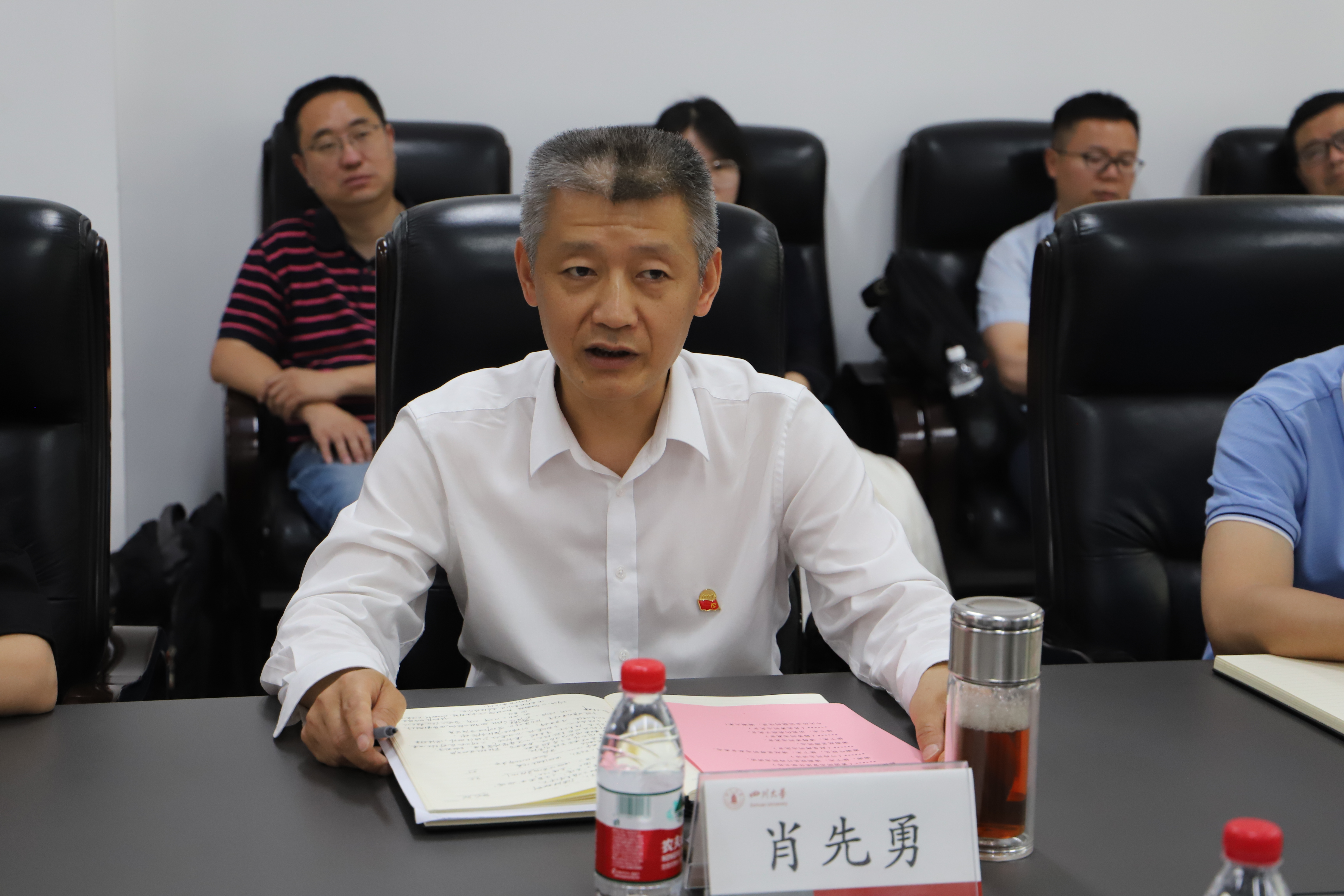 赵昱辉作表态发言。他表示完全拥护、坚决服从学校党委的决定。他说,新的岗位是新的责任,也是新的起点,将始终坚持初心使命,以习近平新时代中国特色社会主义思想为指导,不断增强“四个意识”、坚定“四个自信”、做到“两个维护”,努力推动学院党建工作与事业发展深度融合;始终坚持守正创新,坚持一流标准,树立世界眼光,尽快转变角色,尽快熟悉了解情况,一张蓝图绘到底,与班子成员一起走出一条具有川大风格、体现新工科特色的电气内涵式高质量发展之路;始终坚持弘扬优良作风,切实加强班子团结,凝聚广大师生力量,持续践行以学生发展、教师发展为中心的宗旨意识,持续发展风清气正的育人环境,持续发扬追求卓越、善作善成的精神状态。