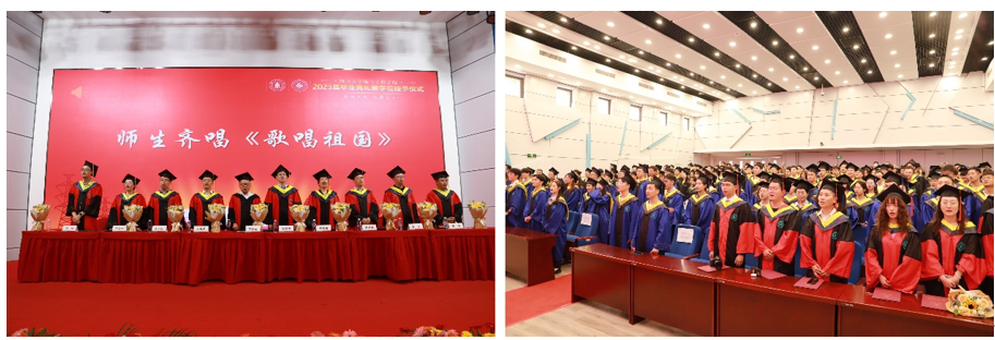 最后,全场师生和学生家长代表齐唱《歌唱祖国》,表达了对祖国的热爱和对未来的美好祝福,永利集团3044am2023届毕业典礼暨学位授予仪式圆满结束。