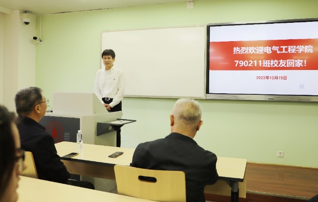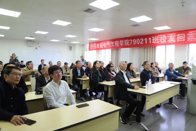 肖先勇院长代表学院热烈欢迎79级学长们回家,他简要介绍了学院近年来在学科建设、科学研究、人才培养和队伍建设等方面取得的成绩。他说,正是在学院全体师生的共同努力和广大校友的大力支持下,使电气学院有了今天的快速发展。当前,学院正处在全面加快高质量内涵式发展的新阶段,希望校友们能够一如既往地关心和支持学院发展,为学院发展汇聚更多的资源。