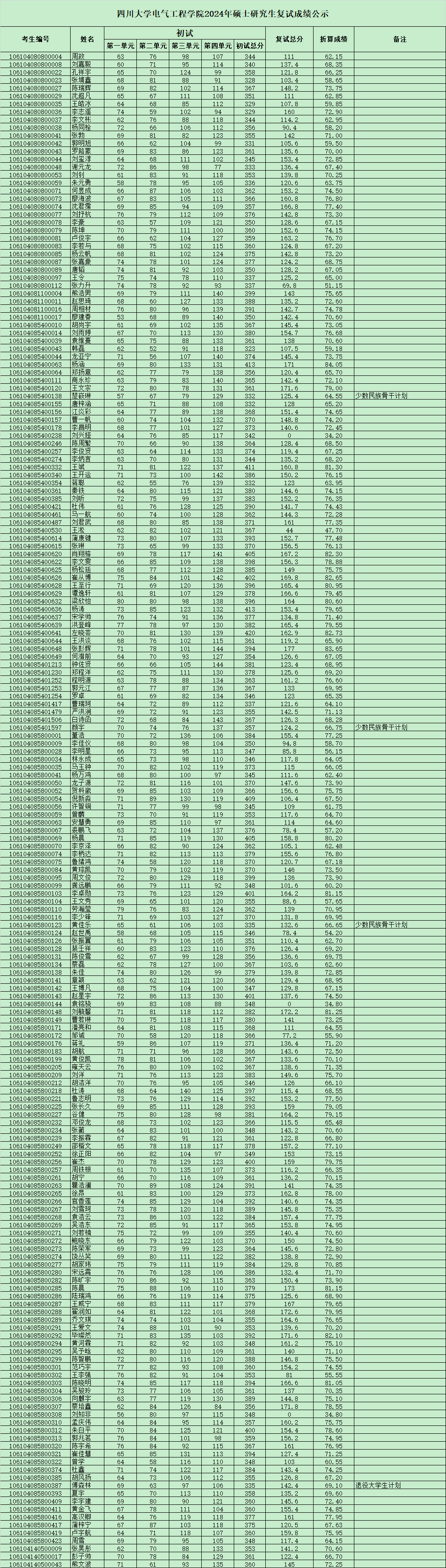 四川大学永利集团3044am2024年硕士研究生复试成绩公示
