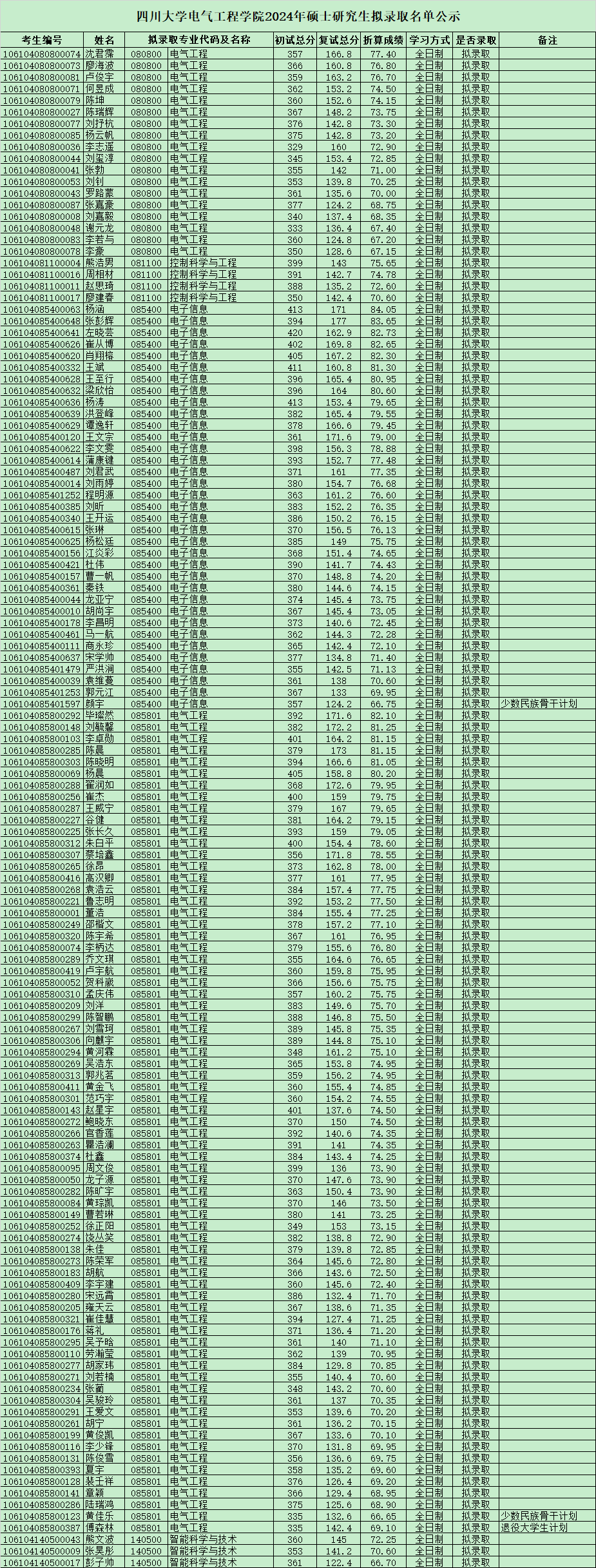 四川大学永利集团3044am2024年硕士研究生拟录取名单公示