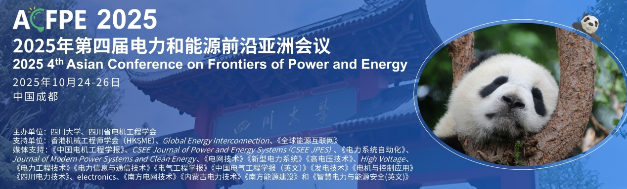 2025年第四届电力和能源前沿亚洲会议(ACFPE 2025) 将于2025年10月24日至26日在中国成都举行,会议由四川大学和四川省电机工程学会联合主办,IEEE 成都分会技术协办,香港机械工程师学会(HKSME)和《全球能源互联网》提供支持,《中国电机工程学报》、CSEE Journal of Power and Energy Systems (CSEE JPES) 、《电力系统自动化》、Journal of Modern Power Systems and Clean Energy、《电网技术》《新型电力系统》《高电压技术》、High Voltage、《电力工程技术》《电力信息与通信技术》《电气工程学报》《中国电气工程学报(英文)》《发电技术》《电机与控制应用》《四川电力技术》、electronics、《南方电网技术》《内蒙古电力技术》《南方能源建设》、AR电气和《智慧电力与能源安全(英文)》提供媒体支持。会议主题“人工智能赋能未来智能电网技术创新”。