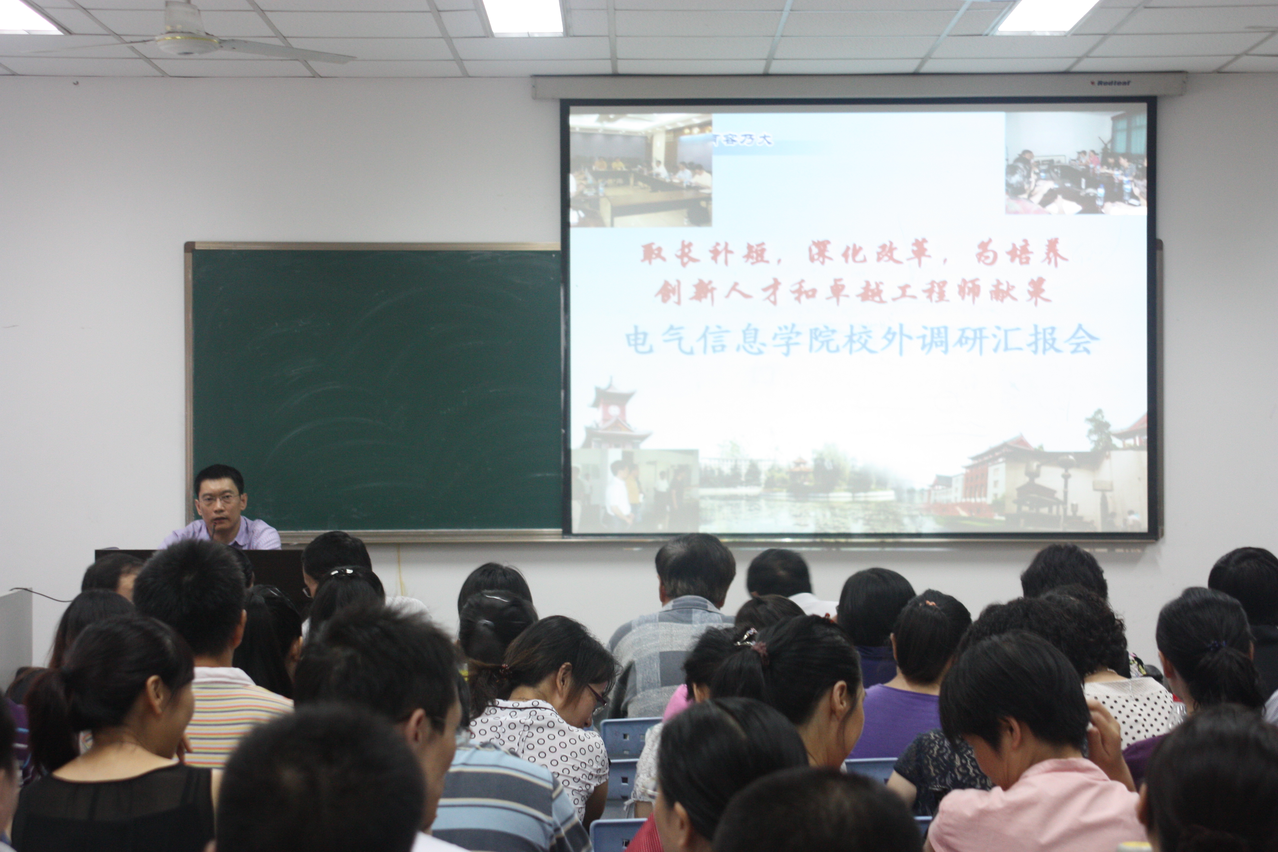 电气信息学院于9月17日下午召开了2010年暑期校外调研成果汇报会,此次调研由学院领导带队,各系中心骨干参加,分南北两条线走访了全国20余所知名高校,旨在取长补短,深化改革,为培养创新人才和卓越工程师积累经验。会议由李华强教授主持,全院教职工参加了汇报会。