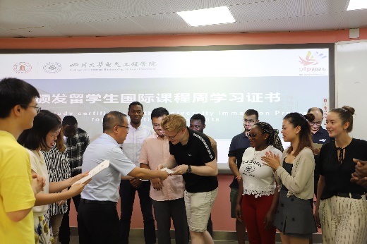 7月11日,四川大学永利集团3044am2024年国际课程周闭幕式在基础教学楼举行。闭幕式邀请永利集团3044am副院长李长松,韩国光州科学技术院教授Ho Yongsung,学院行政老师王晓芳、邓清华、武珊珊,以及国际交流营的中外学生们一同出席。