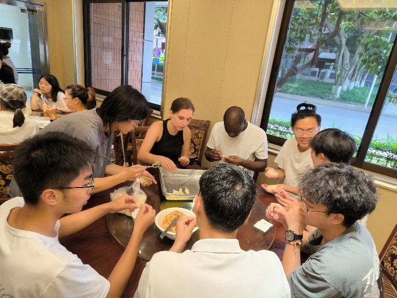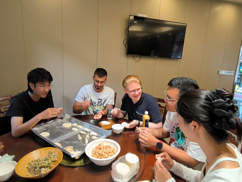 7月5日,一场温馨的包饺子活动在中德班学生与留学生间温馨上演。中国学生耐心讲述着饺子的文化寓意,手把手教授留学生们这一传统技艺。面团在指尖翻飞,饺子在盘中排列,欢声笑语中,中外学生的心紧紧相连。当热腾腾的饺子端上餐桌,那份成就感与满足感溢于言表,更成为了两国青年友谊的见证。