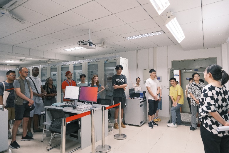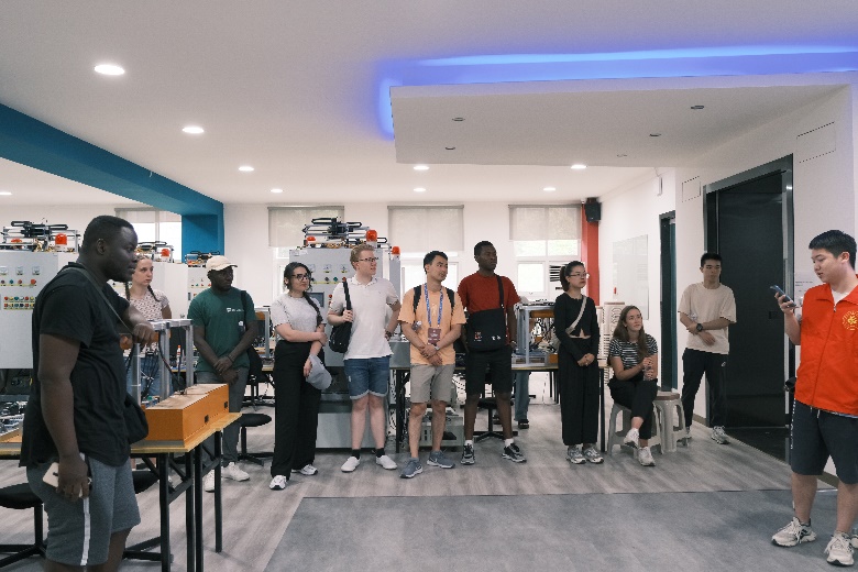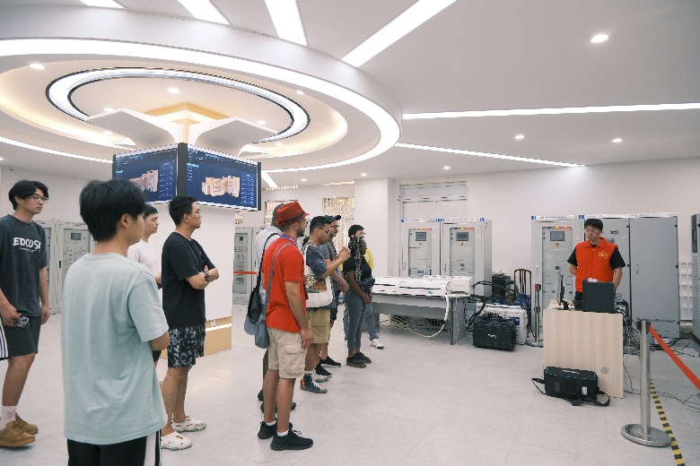 7月2日午后,国际交流营的中外学生们共同走进能源互联网科普基地参观学习。在学院专业教师的悉心引领下,他们先后参观了高电压实验室、新型电力系统与综合能源系统实验室、智能电网及能源互联网实验室、新能源系统实验室、智能控制实验室、工业机器人实验室等。这场融合科普性、专业性与趣味性的深度探访,不仅让中外学生们了解了电气工程和自动化专业领域的广阔天地与璀璨前景,更深刻感受到了永利集团3044am深厚的学术底蕴与鲜明的学科特色。
