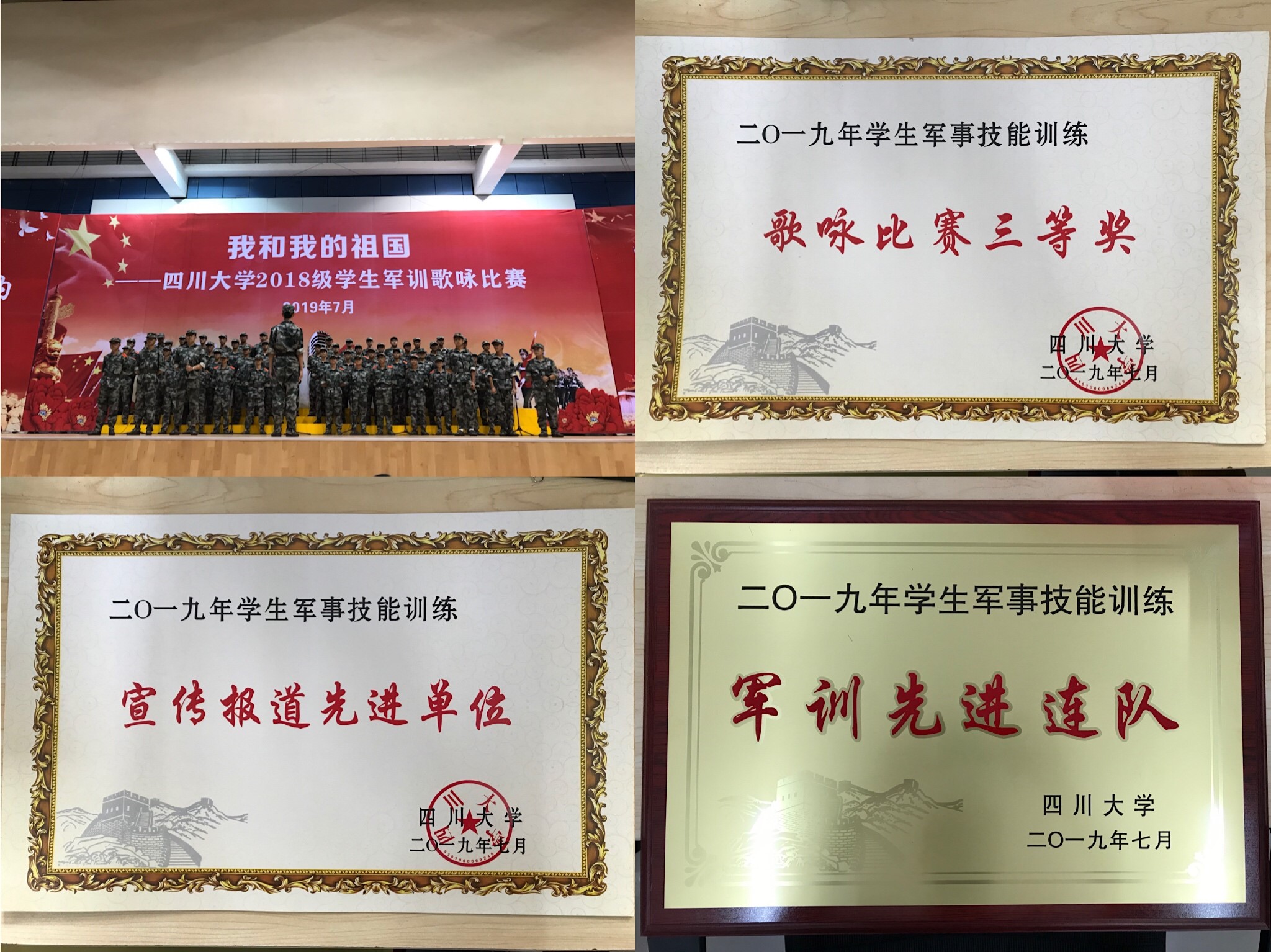 2019年7月16日,四川大学2018级学生军训汇报表演暨总结大会在江安校区成功举办。永利集团3044am的学生参与了分列式、军体拳、手语操等军训汇演,展示了十四天的训练成果,获得了“军训先进连队”、“宣传报道先进单位”和“军训歌咏比赛三等奖”的荣誉。