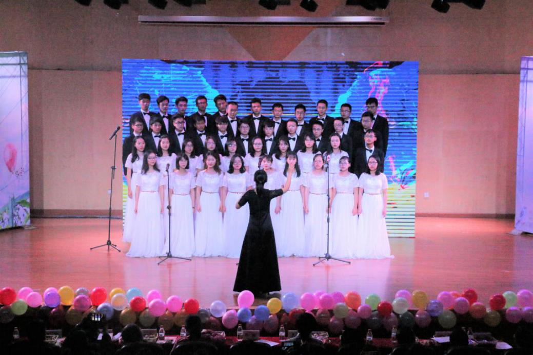 接下来,晚会现场百花齐放,精彩纷呈。杯子舞《稻香》糅合音乐与舞蹈,在轻快的节拍中治愈人心;乐器合奏《大鱼海棠》中西合璧,演奏如行云流水,伴舞空灵飘逸。合唱《彩虹》声振林樾,余音绕梁;韩舞串烧动感十足,激情四射。小品《你的情书》贴近日常生活,以小见大,在青涩的爱情故事中追忆似水年华……晚会互动环节的微信墙抽奖活动将晚会气氛推向高潮,台下观众积极互动,欢呼连连。晚21时30分,迎新晚会在学生会主席团成员的合唱中落下帷幕。