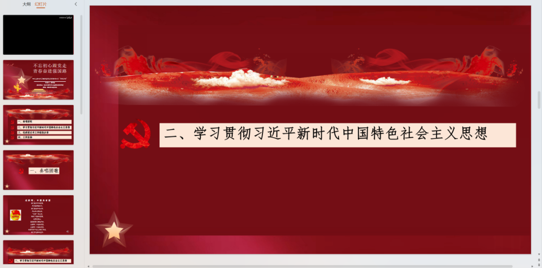 会议开始,李思程同学以习近平新时代中国特色社会主义思想的重要意义为切入点,引领大家学习并贯彻习近平新时代中国特色社会主义思想,提高大家的思想觉悟。他带领同学们观看视频,展示了青年的朝气,并且呼吁大家不负青春年华,有所作为。