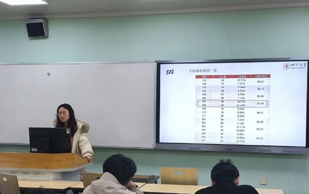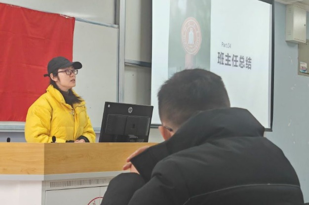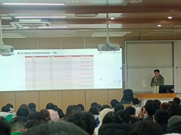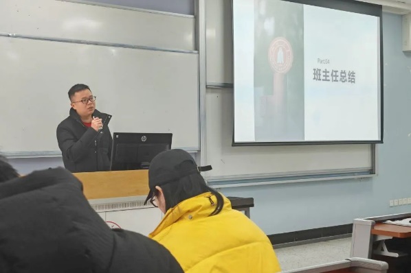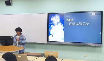 班会上,各班班主任针对班级情况进行了总结并向同学们提出期望。101102班班主任刘继春、刘挺坚老师指出,新时代学生干部应敢做敢为,在工作及学习中均以身作则,做好班级同学的榜样标杆;只有班集体凝聚力量、共同发力,班集体才能蓬勃发展。107108班班主任陈韵竹、焦宁老师强调了学习的重要性以及学期成绩对考研和今后工作的影响,并希望同学们将更多的精力投入到学习当中。303304班班主任龚薇、赵涛老师针对班级成绩做了分析和评价,指出了班级学习存在的不足并提出了改进建议,希望同学们在今后的学习中有所提升。