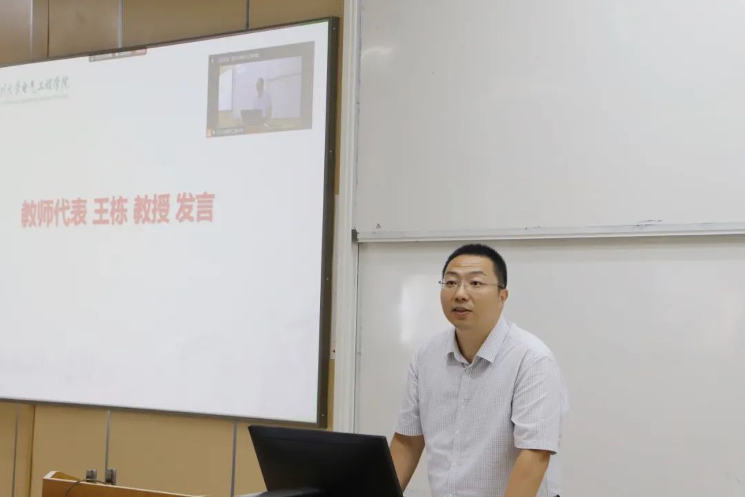 四川大学荣誉教授、加拿大工程院院士钟志勇向全体新生致以热烈欢迎和美好祝福。他强调,电气工程师正引领能源革命,向清洁高效能源体系迈进,勉励新生站在历史潮头,扬帆起航,并分享了几点期望:一是肩负使命感,推动能源转型,实现双碳目标;二是保持好奇心,勇于创新,为电气工程领域贡献力量;三是注重实践,将知识转化为现实力量;四是关注社会,积极参与社会实践和志愿活动。钟教授希望同学们在学术上追求卓越,在社会实践中展现风采,共同书写未来的辉煌篇章。