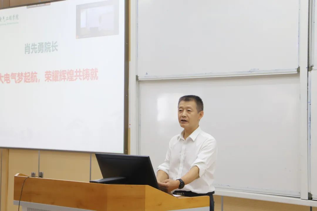 典礼上,肖先勇院长以“川大电气梦起航,荣耀辉煌共铸就”为主题,对新生的到来表示了最诚挚的欢迎和美好的祝愿,并分享了“川大电气——希望与梦想的摇篮”“川大电气——志向与远航的灯塔”“川大电气——荣耀与辉煌的见证”三点心语。肖院长首先回顾了永利集团3044am辉煌的历史与杰出的校友,强调了学院在国家能源电力事业及重大战略需求中的重要作用,激励新生以这些优秀前辈为榜样,怀揣梦想,勇于追求。接着,他强调了学院作为新生志向与远航的灯塔,将为大家提供全方位的支持与指导,帮助新生克服成长中的种种困难与挑战,助力他们实现自我价值与人生目标。最后,他展望了新生们的未来,希望每位同学都能在学院的培养下,成为精通关键核心技术、具备解决重大复杂工程问题能力的栋梁之才,为社会的进步与发展贡献力量!