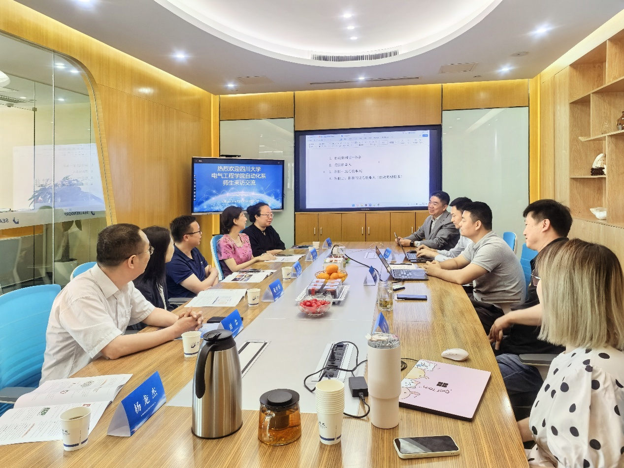 为深化校企合作,拓宽学生视野,培育高质量工科人才,4月18日上午,四川大学永利集团3044am党委副书记戴婷婷,自动化系主任赵涛、党支部书记刘念,辅导员于孜清、卜涛、杨龙杰,以及2022级本科自动化专业学生代表,前往成都海成科技有限公司开展访企拓岗活动。