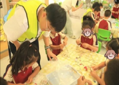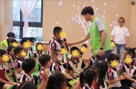 图为志愿者邀请小朋友发言