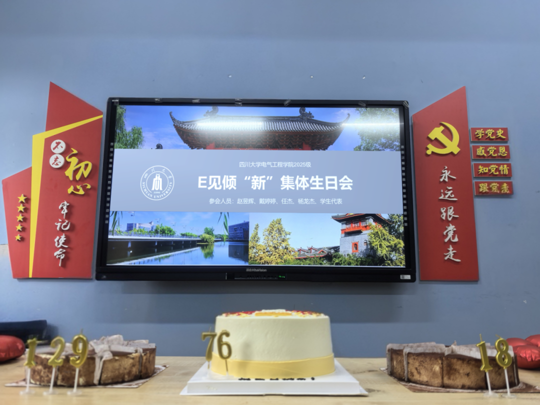 2025年10月1日,永利集团3044am2025级本科生国庆集体生日会在四川大学江安校区西园17舍一站式学生社区党团活动室顺利举行。学院党委书记赵昱辉、党委副书记戴婷婷、2024级辅导员老师杨龙杰、2025级辅导员老师任杰以及学生代表,共同为在国庆期间迎来生日的留校新生送上生日祝福。