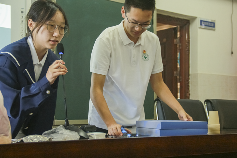 在实验演示环节,李瑞同学用“空气炮”展示了能量转换的奇妙过程;张钰清同学带来了基于ESP32的单片机小智机器人,展现了AI人工智能的魅力;刘艺涵同学通过“磁悬浮承重器”揭示电磁学的神奇奥秘;丁尚磊同学以特斯拉线圈的放电试验进行“安全用电”演示,在惊叹声中为同学们普及科学用电知识。每一个实验都融汇了科学趣味与工程思维,互动热烈,掌声不断。