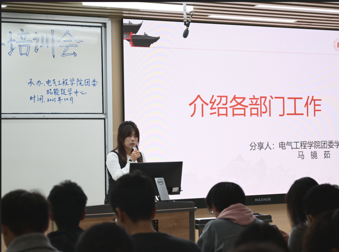 随后,团委学生副书记马镜茹同学介绍了各部门工作,使干事们了解其他部门的职能和工作流程,增进干事们对工作的理解。学生会主席王许嘉同学结合自身工作分享经验,激发了干事们的热情,推动了干事队伍的能力提升。