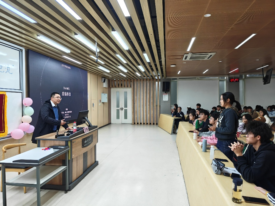 同学们围绕科研训练、学科交叉与行业发展等话题踊跃问,王栋老师逐一回应并与在场师生深入交流,现场气氛活跃有序。