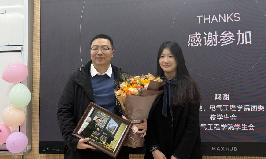 在这之后,王栋老师分享了“人工智能赋能电气工程”的融合趋势。 他结合图示与案例说明人工智能在电力系统运行优化、电气装备智能化管理等方面的作用,人工智能对电气工程未来发展的巨大潜力,引导同学们关注新技术带来的机遇与挑战。王栋老师面向同学们提出学习与成长建议,鼓励大家夯实专业基础,提升编程与智能技术能力,积极参与科研实践和学科竞赛,在跨学科交流中拓展能力边界,成长为适应智能化时代的复合型人才。