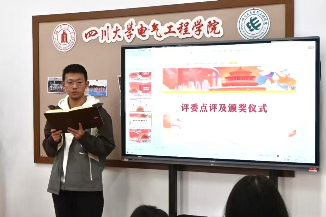 主持人周晨阳同学在总结中表示,经典之所以不朽,在于其回应了各个时代人们需直面的根本问题,号召大家从红色精神中汲取奋进之力,以当代青年的责任与担当书写无悔青春篇章。随后,各团支书对分享内容进行点评,肯定了团员们的独特视角与创新形式,强调了红色文化传播与教育的重要意义,评委也现场公布了读书分享环节的获奖名单。