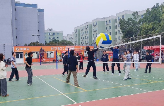 “趣味攻防战”则模拟正式排球赛制,每队8人上场进行小组对抗。赛前,来自105班的四川大学排球协会副会长贾宗韬同学,为同学们讲解得分要点与违规行为,帮助大家明确规则。比赛中,队员们展现出良好的团队协作与应变能力,发球、传球、扣杀等动作虽显生疏却充满热情。场上对抗激烈,场下加油声此起彼伏,整个运动场洋溢着青春活力。