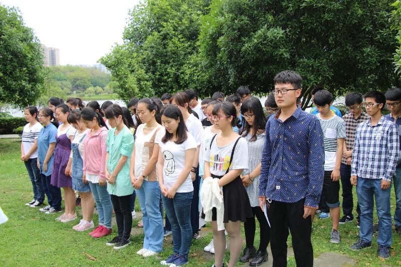 2016年5月6日下午一点,电气信息学院“热爱祖国 缅怀先烈 珍爱和平”爱国主义主题实践活动在四川大学江安校区明远湖畔英烈碑顺利举行。电气信息学院2014级本科所有学生党员以及部分同学共计45人参加了此次活动。活动由赖金鑫同学担任主持