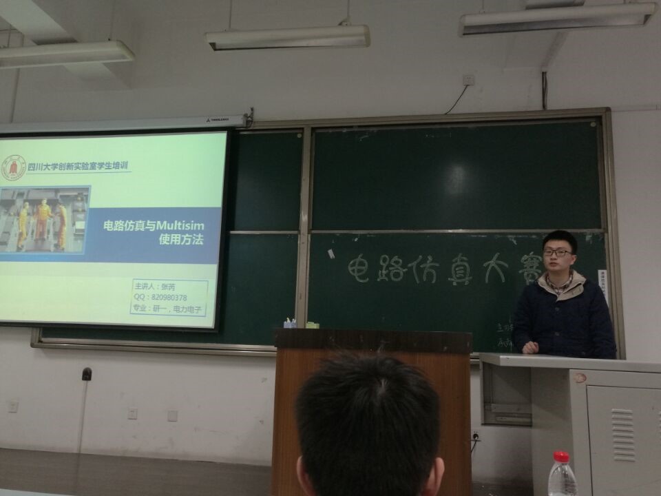 2016年3月12日上午9点 ,由四川大学学生学术科技协会主办、四川大学电气信息学院分科协承办的“一院一品”系列活动之“追电逐梦”电路仿真大赛宣讲及培训会在综合楼C207教室成功举办。