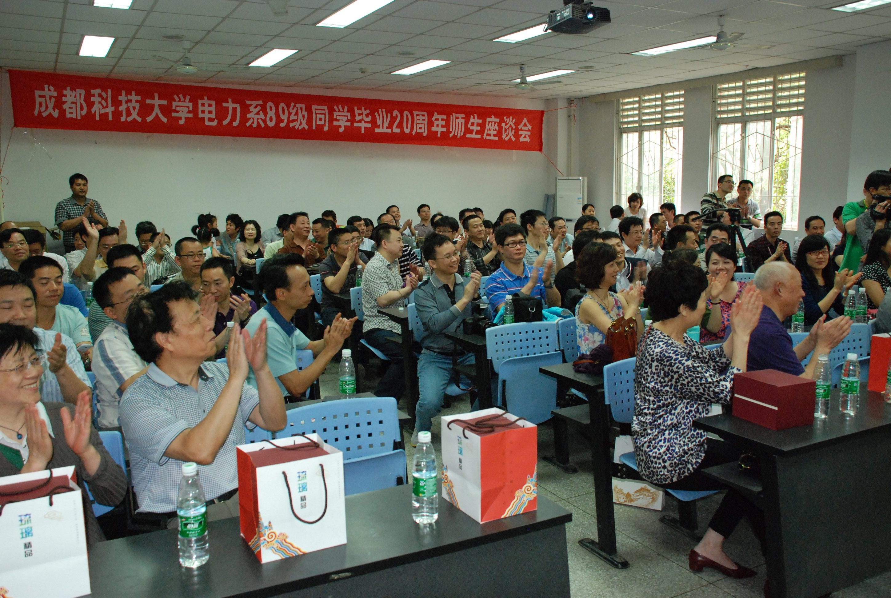 2013年4月30日上午9点半,九十余名原成都科技大学89级电力系校友毕业20年后在望江校区电气信息学院基础教学楼前再聚首。首先,校友们围在一起在捐赠给学校的大树下进行了剪彩并合影留念。