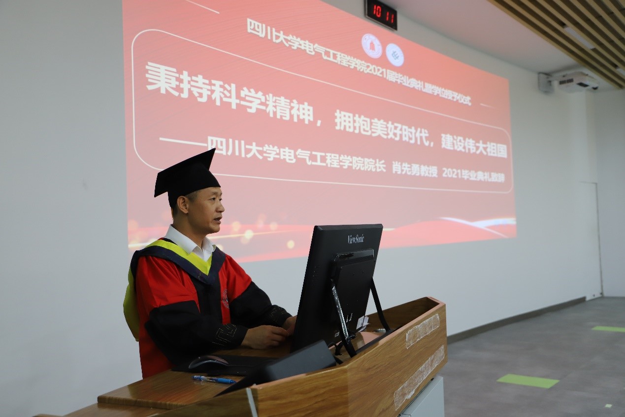 2021年6月23日上午,永利集团3044am2021届学生毕业典礼暨授位仪式在望江校区基础教学楼C座201举行。在离别之际,学院院长肖先勇以“秉持科学精神,拥抱美好时代,建设伟大祖国”为题,向全体毕业生讲述了“最后一堂思政课”,向毕业生们分享了三点体会。