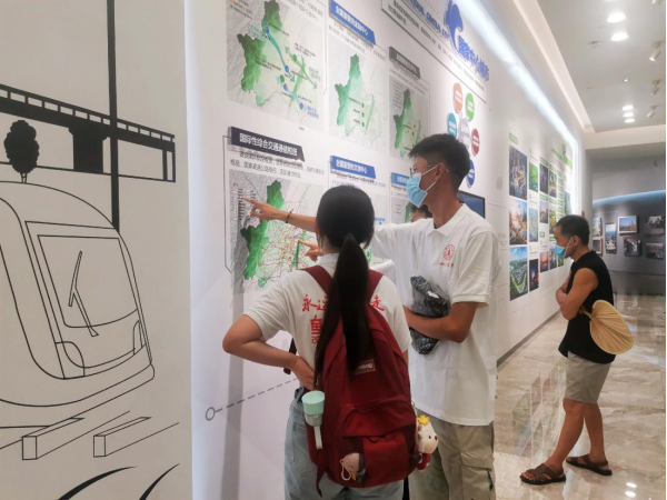 实践团队首先前往了成都规划馆,从城址迁徙、溯源古蜀、名都会、名城保护四个层面了解了成都千年城市文明及今人传承的巴蜀文明。在结束对成都市规划馆的参观学习后,成员们对部分到访参观者和馆内工作人员进行了采访。通过采访参观人员,团队成员了解到了成都市规划馆对引进人才、促进成渝地区发展做出的巨大贡献,感受到社会群众对成都未来发展及美好前景的无限期待。