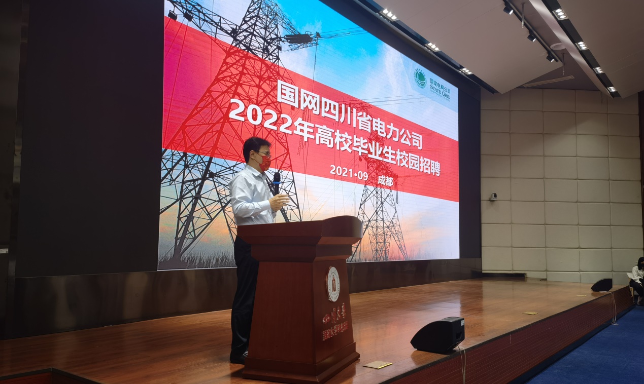 上午10时,招聘会在国网四川省电力公司2022届校园招聘宣传片中拉开序幕。国网四川省电力公司人力资源部主任姚建东现场致辞。姚主任首先代表公司向全体参会学生表示欢迎,并对协助本次招聘会筹备的四川大学永利集团3044am表示感谢。随后,他详细介绍了公司近年来的发展改革情况和人才强企目标,指出在国家能源战略的驱动下,四川省及四川电力工业都将迎来巨大机遇。他号召广大应届毕业生来到四川、来到国网四川省电力公司开启职业生涯,成就事业、实现理想。最后,姚主任预祝本次招聘会圆满成功,并宣布现场招聘环节正式启动。