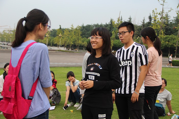 游园会过后,三组队员到达了预定相聚的地点——图书馆草坪,开始围坐在一起进行素拓活动。每个人均敞开心扉,在活动过程中加深相互的认识和了解,展现各自的风采。