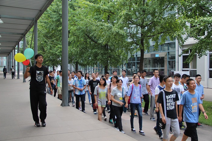 参加活动的新生们在2015级学生的带领下分为三组,从青春广场中央的国旗杆下出发,按照不同的路线来游赏江安校区美景。在愉悦的氛围中,大家领略了长桥、东门、明远湖畔、白石桥及不高山等具有江安校区独特风貌的景观,同时也对第一教学楼、综合楼、江安体育馆、图书馆、文科楼和第二基础实验楼等学习场所有了全方位的了解与领悟。