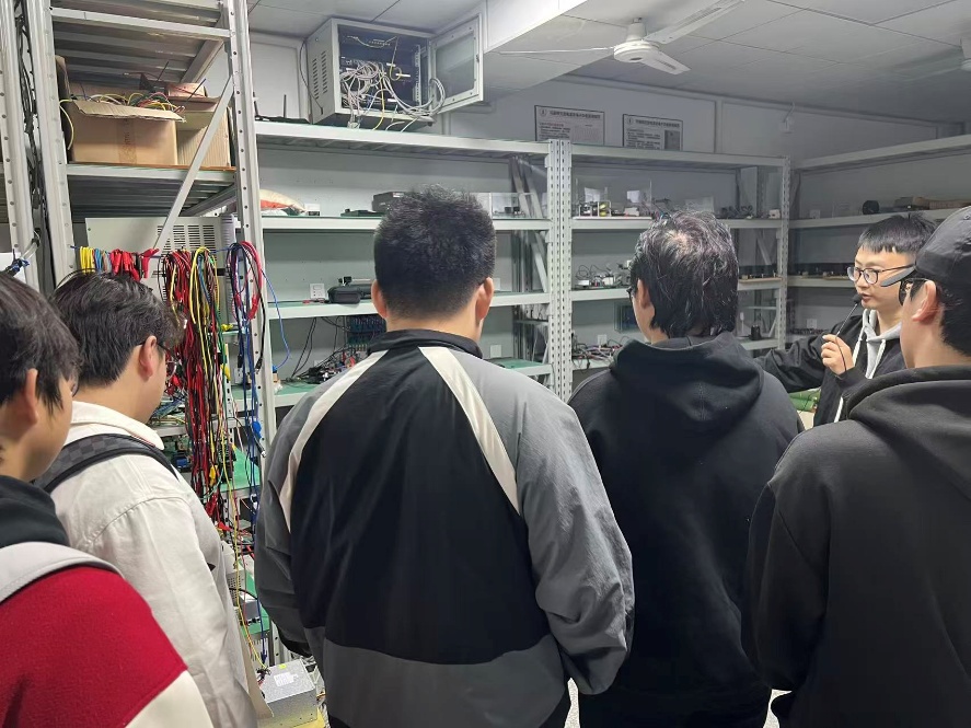 最后,同学们参观了位于五楼的科研办公室和一楼的实验大厅,实地感受研究生的日常科研氛围,了解数据采集、仿真分析、论文开题与项目管理等科研流程。王顺亮老师特别介绍了实验室配备的RTDS等高端仿真设备,拓宽了学生的专业视野,也激发了大家的科研兴趣与创新动力。