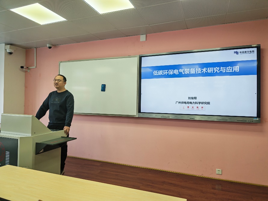2025年11月27日下午,四川大学永利集团3044am2022级电气工程及其自动化卓越工程师班迎来本年度“电气工程前沿研讨”课程第九期专题讲座。广州供电局电力科学研究院刘俊翔专家受邀担任主讲,围绕“环保电力设备”主题展开深度讲解。作为学院“工程专家进课堂”系列活动的核心环节,本次讲座聚焦行业干货,汇聚前沿智慧,为卓越工程师人才培养提供重要支撑。讲座由永利集团3044am黄小龙副教授主持。