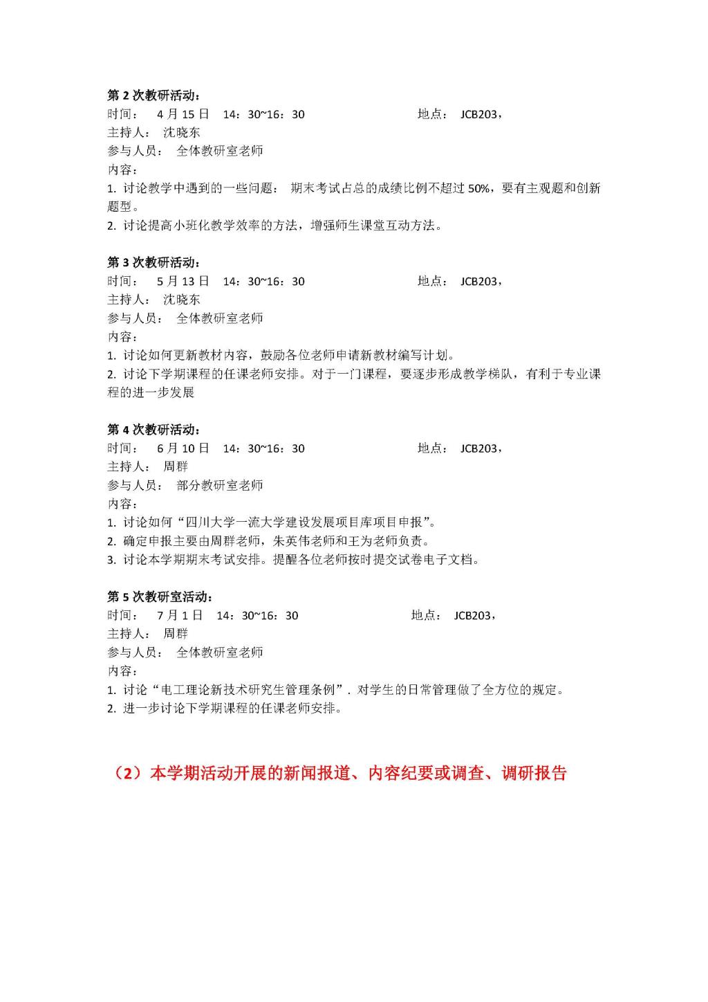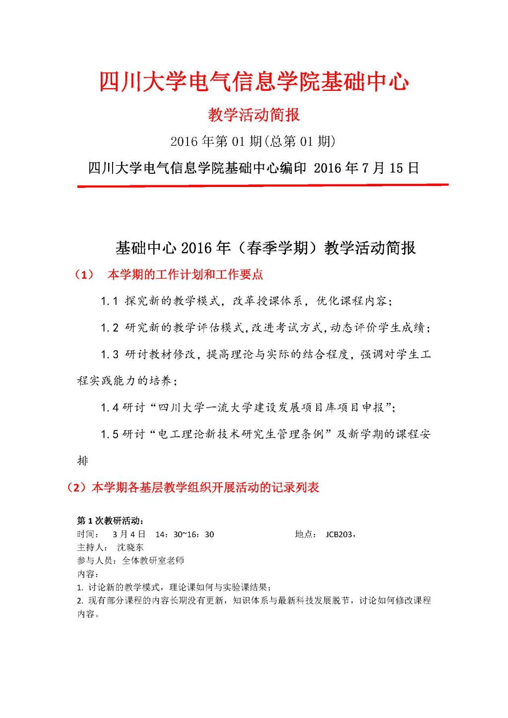 基础中心2016年(春季学期)教学活动简报